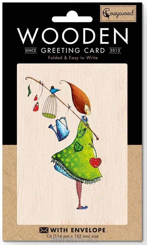 Karnet drewniany C6 + koperta Kobieta z bukietem