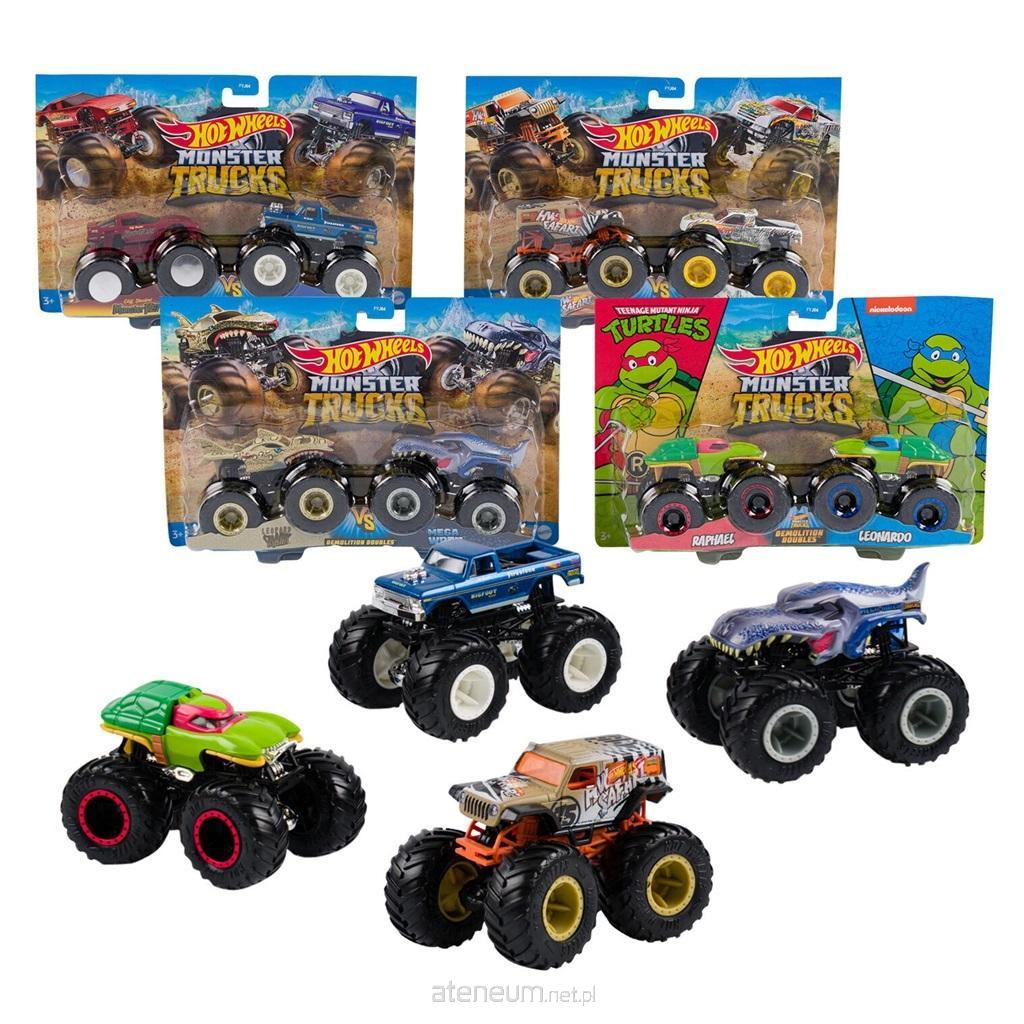 Pojazdy Hot Wheels® Monster Trucks wykonane w skali 1:64 - teraz dostępne w dwupaku - stają do walki, by zmiażdżyć swoich arcywrogów! Dobrane w pary mogą brać udział w starciach między swoimi autami o ogromnych kołach!