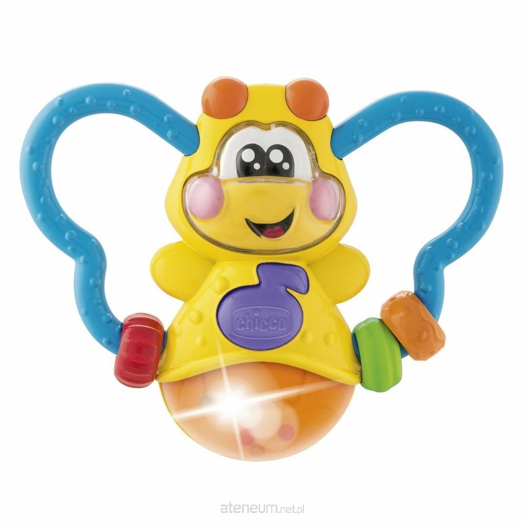 Elektroniczna grzechotka o kształcie świetlika bawi dziecko dźwiękami i wesołymi melodiami, pomagając mu w najbardziej subtelny sposób w rozwoju zmysłów, szczególnie słuchu, wzroku i dotyku. Dźwięki i melodie stymulują słuch dziecka, a kolorowe pierścienie zaczepione na niebieskich, ergonomicznych uchwytach, dziecko może przesuwać w górę i w dół i, w ten sposób, trenować małą motorykę. Grzechotkę-świetlika dziecko będzie pewnie trzymało w rączkach dzięki wygodnym uchwytom, które wyglądają jak skrzydełka owada.