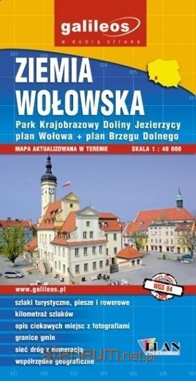 Opracowanie kartograficzne obejmuje obszar powiatu wołowskiego z miastami Brzeg Dolny, Wołów i Wąsosz i zespołem klasztornym w Lubiążu, między dolinami Odry i Baryczy. Jest to obszar ograniczony współrzędnymi 1626'-1648' długości geograficznej wschodniej oraz 5114'-5134' szerokości geograficznej północnej. Centrum tego obszaru zajmuje Park Krajobrazowy Doliny Jezierzycy. Na mapie zaznaczono informacje przydatne turyście, jak zabytki, noclegi, granice obszarów chronionych, szczególnie atrakcyjne miejsca zaznaczono żółtą ramką. W miejscowościach opisano nazwy ulic. Podano aktualne przebiegi szlaków pieszych i rowerowych, łącznie z kilometrażem, co pozwoli łatwiej zaplanować wycieczkę. Ukształtowanie terenu pokazano przy pomocy warstwic o cięciu co 5 m. Zawiera plany Wołowa i Brzegu Dolnego w skali 1:10 000. Strona opisowa zawiera bogato ilustrowany fotografiami opis miejscowości, krain geograficznych, parków i rezerwatów z obszaru mapy.