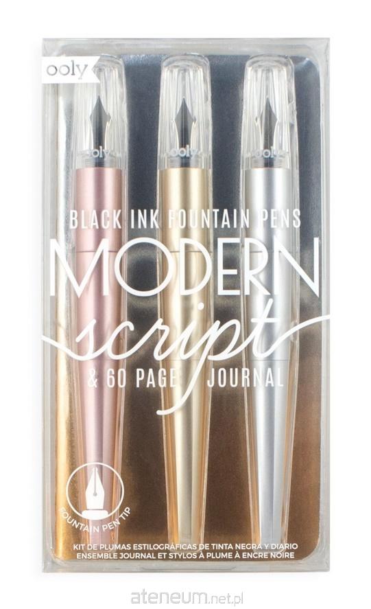 Zestaw 4 elementów Pióra wieczne i Notes Modern Script - 3 pióra wieczne w obudowach: złoto, różowe złoto, srebna - 60 stronnicowy notes w linie (9.5 x 15 cm) ze srebrno-złotą okładką ombr - Pasują do nich wszystkie naboje Ooly - Pasują do ołówków Modern Graphite Pencils