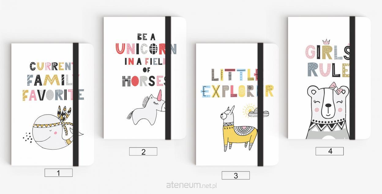 Notatnik 96 kartkowy z gumką w twardej okładce. Format A6. Wymiar 14.5x10.5 cm.
