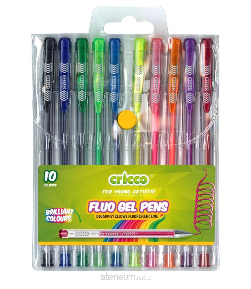 - Długopisy żelowe w intensywnych odblaskowych kolorach