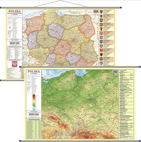 Mapa ścienna Polska fizyczna oraz administracyjno-drogowa w skali 1:1 800 000 wydawnictwa EkoGraf to wyjątkowy produkt.