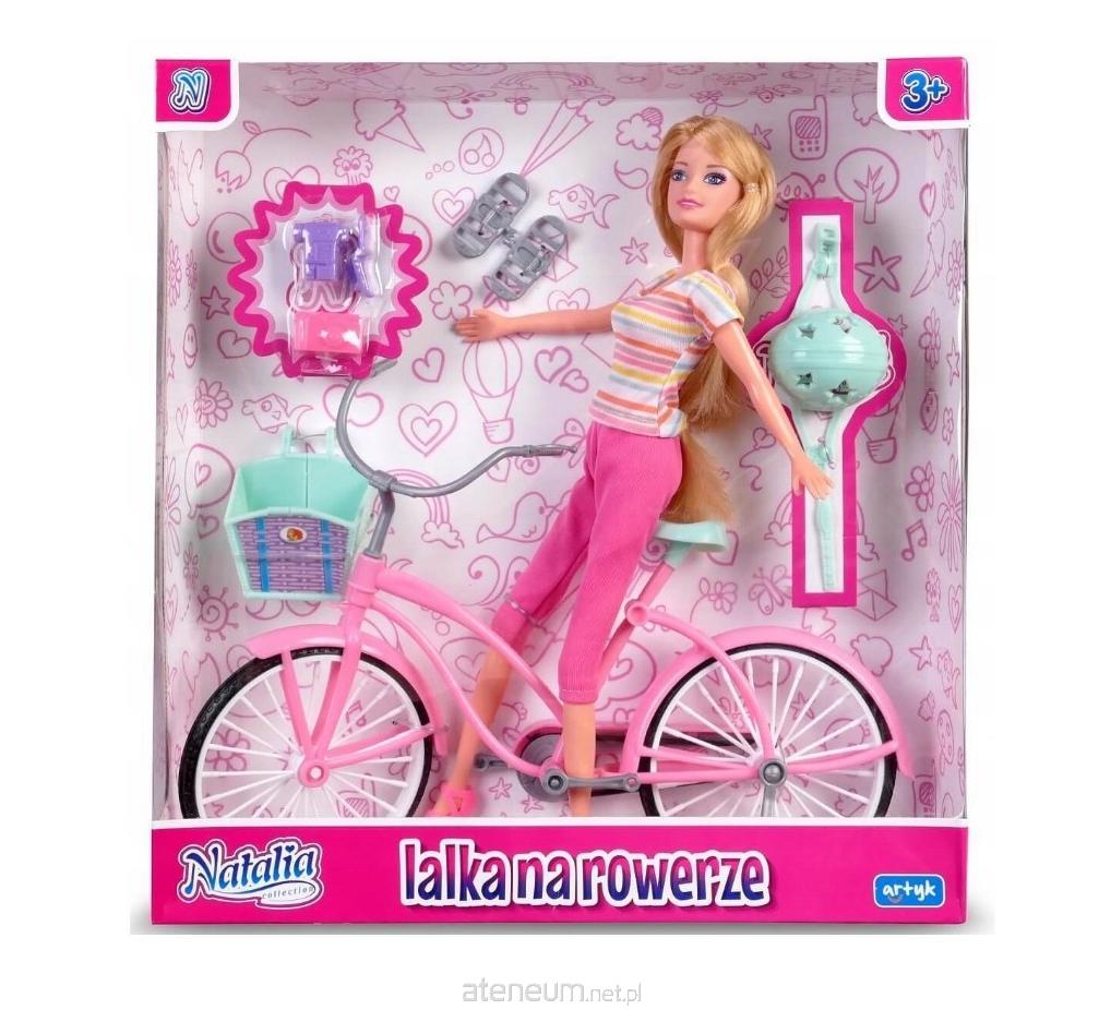 Lalka Natalia 29 cm. W zestawie: lalka, rower, kask, koszyk na rower, akecesoria. 2 wzory.