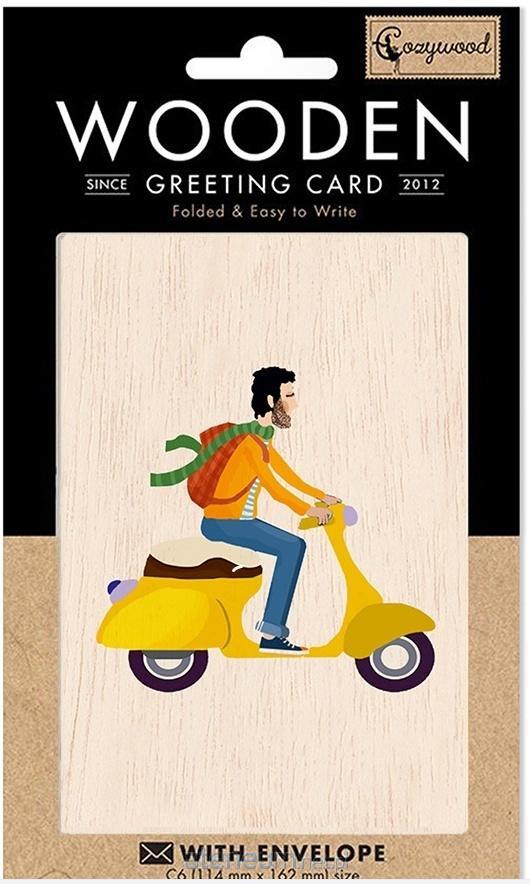 Karnet drewniany C6 + koperta Kobieta z dmuchawcem