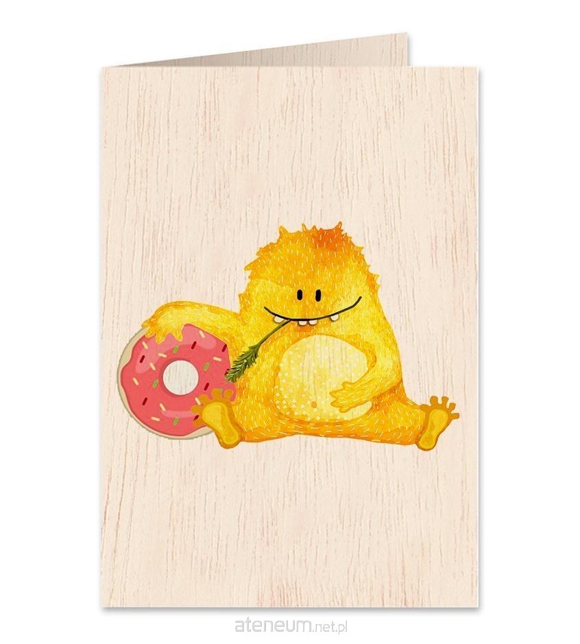 Karnet drewniany C6 + koperta Kobieta ze słoikiem