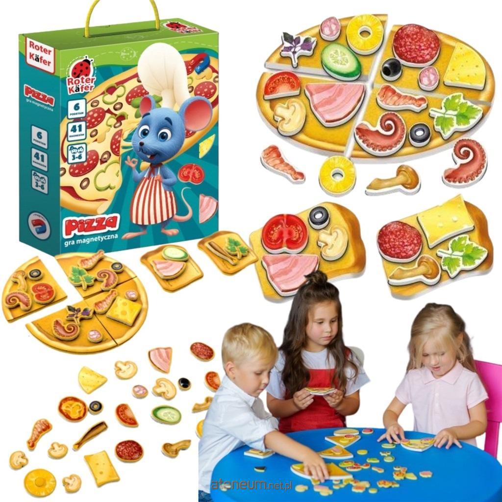 Przygotować prawie prawdziwą pizzę i poczęstować nią przyjaciół czy rodziców teraz to żaden problem! Takiej przekąski wystarczy dla wszystkich! Duża, okrągła podstawa została podzielona na 6 części. Jeśli ułożycie je razem, możecie "przygotować" dużą, dowolną pizzę. Jeśli podzielicie podstawę na porcyjne kawałeczki i przyjmiecie zamówienie, możecie przygotować każdemu taką pizzę, jaką zechce. Taka gra nigdy się nie znudzi! Gra rozwija małą motorykę, pobudza wyobraźnię, uczy komunikować się, poszerza słownictwo.