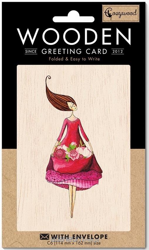 Karnet drewniany C6 + koperta Kobieta z bukietem