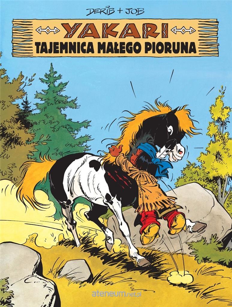 Szósty album przygodowo-humorystycznych opowieści o małym Indianinie i jego zwierzęcych przyjaciołach. Yakari codziennie szaleje na swoim niewielkim mustangu Małym Piorunie, który z dnia na dzień staje się coraz szybszy. Jednak pewnego ranka chłopiec nie zastaje konika w plemiennym stadzie... Co się stało? Gdzie się podział wierny przyjaciel? Mały Piorun dostał tajemnicze wezwanie i musiał podążyć do odległej krainy, gdzie czekają go niebezpieczne próby. Przebrnąć je zdołają tylko najdzielniejsze z dzielnych mustangów. Czemu owe próby mają służyć i czy po ich pokonaniu konik będzie takim samym wesołym towarzyszem zabaw jak wcześniej? Cykl stworzyli pod koniec lat 60. dwaj Szwajcarzy scenarzysta Job (Andr Jobin) oraz rysownik Derib (Claude de Ribaupierre). Za tomy 6 i 31 Yakariego (odpowiednio w latach 1982 i 2006) dostali nagrody Festiwalu Komiksowego w Angoulme w różnych kategoriach komiksu dziecięcego. Do dziś ukazało się prawie czterdzieści albumów serii, która wciąż bawi młodszych i starszych czytelników.
