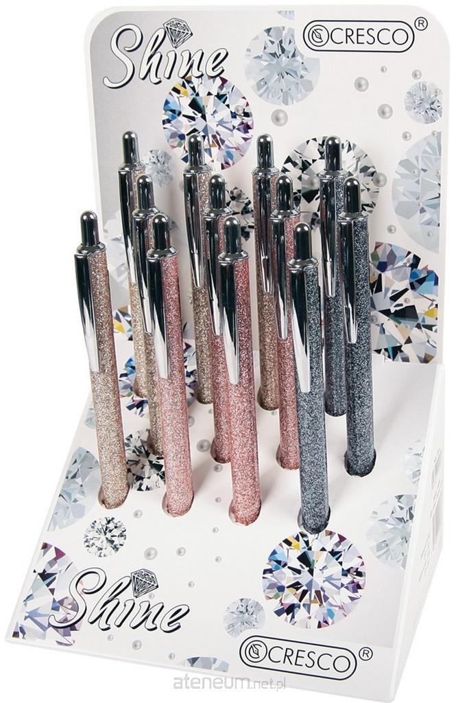 Specyfikacja: materiał - metal (aluminium) Długopis z wkładem wielkopojemny typu parker, kolor niebieski Grubość linii pisania 1mm mechanizm włączania pstrykany opakowanie rodzaj - kartonowy dpy w przeźroczystym opakowaniu opakowanie zbiorcze (szt) 12 Kolory - 3 pod nadruk NIE Wykończenia - srebrne, błyszczące Korpus powierzchnia brokatowa kolory brokat grafitowy,różowy i złotyKorpus przechodzące 2 metaliczne kolory