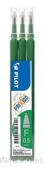 Wkład do pióra kulkowego Frixion, wypełniony unikalnym tuszem Metamo, który błyskawicznie zasycha na papierze. Występuje w sześciu intensywnych, nieblaknących kolorach, odporny na działanie wody i światła. Tusz reaguje na działanie temperatury: znika przy temperaturze ok. + 65C, a powraca przy temperaturze ok. - 10C. Kula wykonana z węglika wolframu. Grubość linii pisania: 0,25 mm.