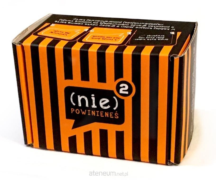 Autorzy Kart Dżentelmenów przedstawiają (nie)Powinieneś 2 imprezowa gra karciana dla okropnych ludzi, którzy lubią się śmiać bez zahamowań! W każdej kolejce jeden z graczy czyta pytanie z czarnej karty a pozostali gracze odpowiadają za pomocą najzabawniejszej pomarańczowej karty. Celem gry jest tworzenie najzabawniejszych, dwuznacznych i często bezwstydnych kombinacji za które gracze otrzymują punkty. Karty zawierają napisy zarówno po polsku jak i po angielsku, dzięki czemu możecie zagrać z anglojęzycznymi znajomymi. Grę można łączyć z (nie)Powinieneś 1 więcej kombinacji, więcej śmiechu! Uwaga! Gra zawiera niecenzuralne teksty! Tylko dla osób pełnoletnich! Zasady gry tłumaczy się w mniej niż minutę Dowolny czas rozgrywki Kombinacje pełne czarnego humoru Niewielki rozmiar pudełka sprawia, że można wziąć ją wszędzie Świetnie sprawdza się jako przerywnik podczas spotkań ze znajomymi Pudełko zawiera 220 kart w tym: - 160 kart odpowiedzi - 51 kart pytań - 9 pustych kart (6 odpowiedzi i 3 pytań) kart na Twoje pomysły - instrukcję do gry