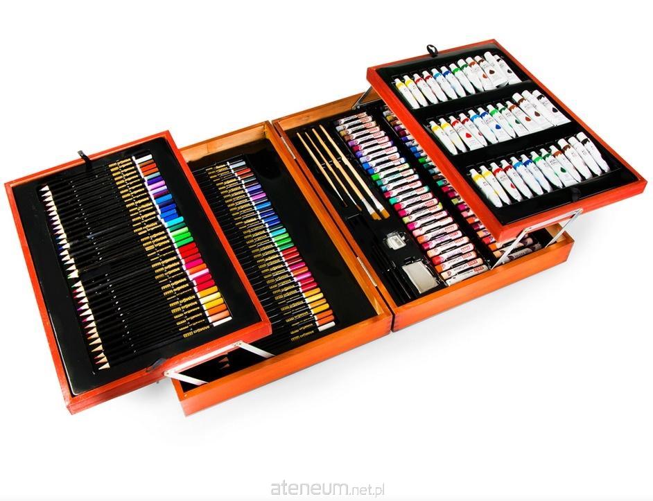 Cechy Zestaw artystyczny to praktyczne zestawienie elementów, które świetnie sprawdzą się przy każdym plastycznym wyzwaniu. Zestaw do malowania i kolorowania to praktyczne rozwiązanie dla wszystkich, którzy cenią sobie wygodę i kreatywne rozwiązania. Zestaw składa się z aż 168 elementów, a w jego skład wchodzi 70 kredek, 36 farbek akrylowych , 54 pastele olejne, 4 pędzelki, 2 ołówki HB, temperówka oraz buteleczka. Wysokiej jakości produkty to doskonały początek artystycznej przygody. Zestaw artystyczny sprawdzi się także dla tych, którzy stawili już pierwsze kroki w świecie sztuki. Całość została umieszczona w eleganckiej i praktycznej walizce, ułatwiającej przenoszenie i dodatkowo podbijającej walory estetyczne całego zestawu. Zestaw do malowania i rysowania to nie tylko obowiązkowy element wyposażenia każdego ucznia czy miłośnika kreatywnych zadań, ale także doskonały pomysł na prezent. Parametry 70 kredek 36 farbek akrylowych 54 pastele olejne 4 pędzelki 2 ołówki HB temperówka buteleczka