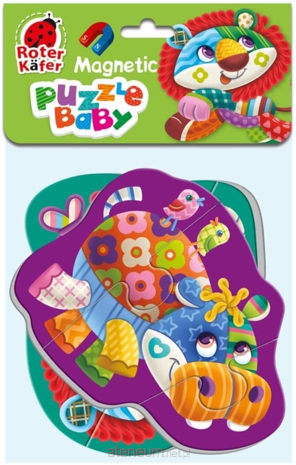 Baby puzzle są to pierwsze puzzle dla najmłodszych. Komplet zawiera dwa obrazki z ulubionymi zwierzętami domowymi. Dziecko ma za zadanie połączyć elementy puzzli, układając poszczeglne zwierzęta. Zabawa rozwija drobną motorykę, logikę, koncentrację uwagi, skupienie. Puzzle są magnetyczne. Zestaw: 2 obrazki