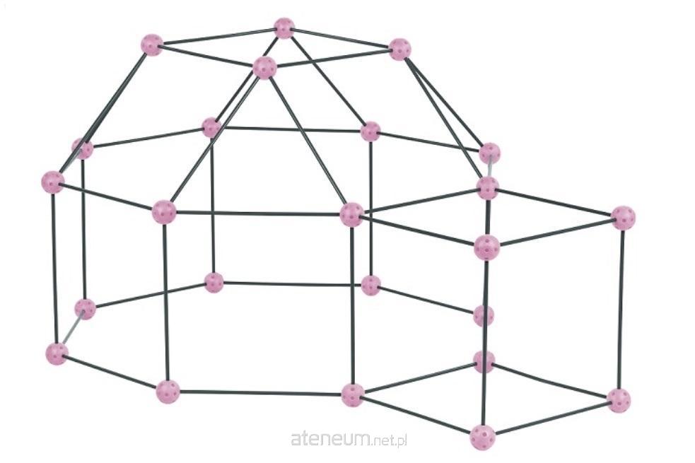 Zestaw zawiera 72 wysokiej jakości elementy - 27 kul (łączników) i 45 patyków - które w łatwy i intuicyjny sposób łączy się. Zabawka edukacyjna, która rozwija umiejętności wizualno-przestrzenne, inżynierskie, projektowania, planowania oraz kreatywność. Zwariowany Namiot: zestaw kulek i patyków, które w łatwy sposób łączą się, by budować duże, przestrzenne konstrukcje; rozwija umiejętności planowania, wizualno-przestrzenne, kreatywności, wyobraźnię, aby ożywić budowlę wystarczy narzucić koc; zawiera 27 geometrycznie precyzyjnych kul i 45 patyków zestaw nie zawiera koca; elementy łatwo się łączy i rozkłada; kolor różowo - szary zestawu
