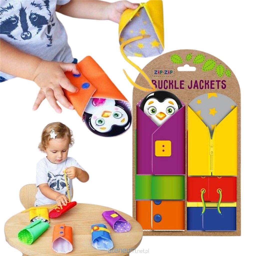 Malutki pingwin uwielbia zmieniać stroje! Na jego kurtkach są dużo rżnych zamkw... Zamek błyskawiczny, guziki, przyciski oraz inne. Pozwl dziecku pomc przyjacielowi, a jednocześnie nauczy się zapinać odzież! W trakcie gry dziecko poćwiczy uwagę, wytrwałość, logikę i drobną motorykę. W zestawie: 6 kurtek, 1 figurka pingwina