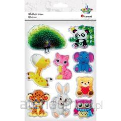 Naklejki żelowe Zoo małe zwierzątka + paw 9szt.