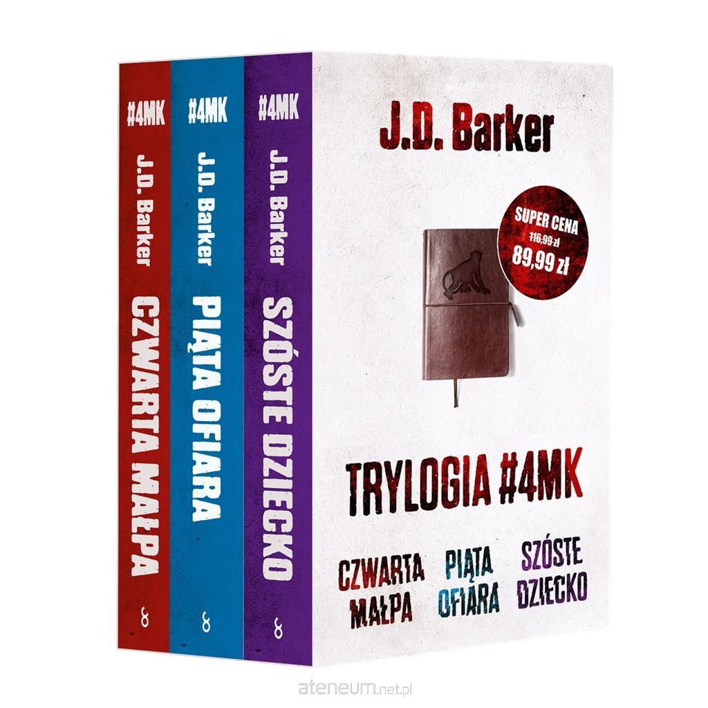 Seria #4MK o detektywie Samie Porterze odniosła międzynarodowy sukces, prawa zostały sprzedane do kilkudziesięciu krajów, a sam autor porónywany jest do Stephena Kinga. Czwarta małpa Tajemniczy seryjny morderca zwany przez policję Zabójcą Czwartej Małpy sieje grozę wśród mieszkańców Chicago. Policja od lat bezskutecznie próbuje odkryć jego tożsamość. Przełomem w śledztwie jest wypadek, w którym pod kołami autobusu ginie pieszy. Prawdopodobnie to Zabójca Czwartej Małpy: przy zwłokach zostaje znalezione charakterystyczne pudełko z fragmentem ciała uprowadzonej ofiary. Detektyw Sam Porter w kieszeni marynarki mężczyzny znajduje pamiętnik. Musi wejść w umysł psychopaty, by zrozumieć jego zagmatwaną historię i odnaleźć ostatnią porwaną osobę. Zanim będzie za późno Piąta ofiara Chicago. Jedna z najsurowszych zim od wielu lat. Pod powierzchnią skutego lodem jeziora znaleziono ciało nastolatki Elli Reynolds. Nikt nie wie, jak to możliwe dziewczyna zniknęła przed trzema tygodniami, podczas gdy jezioro zamarzło kilka miesięcy wcześniej. Co więcej Ella ma na sobie ubrania, w których ostatnio widziano inną poszukiwaną nastolatkę. Ale jej zaginięcie zgłoszono dwa dni temu Media ogłaszają, że za porwaniem stoi seryjny morderca. Sam Porter próbuje rozwikłać zagadkę, czując, że sprawa może być początkiem czegoś większego. Jednocześnie wbrew poleceniom przełożonych, ogarnięty obsesją, na własną rękę kontynuuje pościg za Zabójcą Czwartej Małpy. Detektyw Porter szybko zdaje sobie sprawę, że jedynym miejscem bardziej przerażającym od umysłu seryjnego mordercy jest umysł kobiety, która wydała go na świat. Szóste dziecko Detektywowi Samowi Porterowi słowa Ojcze, wybacz mi przywołują dawno zapomniane wspomnienia; celowo pogrzebaną przeszłość. Dla Ansona Bishopa stają się pomostem łączącym dzieciństwo z teraźniejszością i powodem do ujawnienia ukrytej od dawna prawdy. Kilka słów, zapisanych obok każdego ciała, łączy ofiary z nieuchwytnym mordercą, w tym samym momencie pozostawiającym po sobie trupy na przestrzeni całych Stanów Zjednoczonych. FBI wpada w panikę tym bardziej że w jego szeregach szerzy się korupcja. Kiedy Anson Bishop, główny podejrzany w sprawie Zabójcy Czwartej Małpy, ujawni swoją historię, zmieni zupełnie nie tylko kierunek śledztwa, ale też życie wszystkich zaangażowanych. J.D. Barker jest pisarzem jedynym w swoim rodzaju to coś rzadkiego i wyjątkowego. JAMES PATTERSON Utalentowany, niesamowicie przebiegły pisarz. JEFFERY DEAVER J.D. Barker Amerykański autor międzynarodowych bestsellerów. Jego książki to wyjątkowe połączenie thrillera, kryminału i powieści z elementami nadprzyrodzonymi przez co Barker bywa często porównywany do Stephena Kinga. Przygodę z pisaniem rozpoczął podczas studiów. Dzięki pierwszej powieści został laureatem Bram Stoker Award za najlepszy debiut.