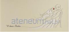 Karnet w formacie 15 x 15 cm. Wydrukowany na wysokiej jakości papierze. Uszlachetniony złotym metalicznym lakierem 3D. W zestawie perłowa koperta.
