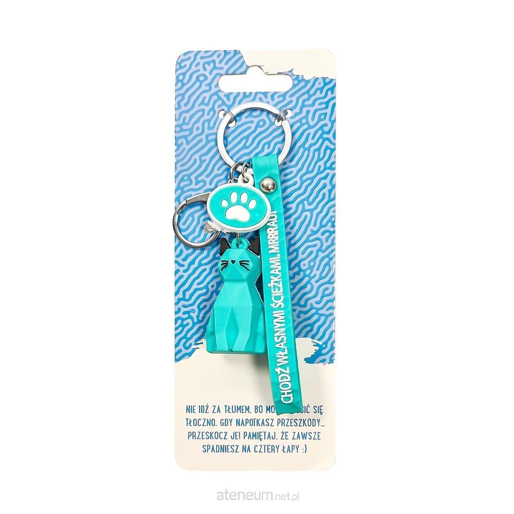 Brelok geometryczny z metalowym kółkiem i karabińczykiem. Dodatkowo: silikonowy pasek z tekstem w języku polskim, oraz charms z odciskiem łapki