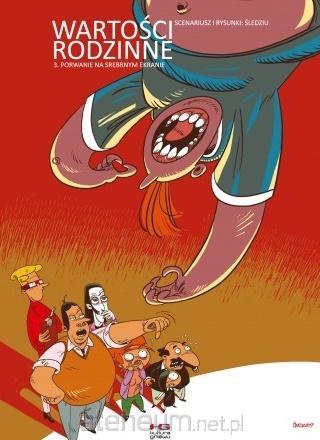 W trzeciej odsłonie Wartości rodzinnych rodzina Królów wybiera się do siedziby telewizji Kanał, produkującej takie programy, jak Gwiazdy strzelają do ludzi. Zaproszeni przez znajomego, producenta Wronkę, mają uczestniczyć w emitowanym na żywo jednym z największych show stacji - wieczorze z Tucholskim Patrolem, łowcami dzikich bestii. Jednak podczas transmisji z prezentacji ich najnowszej zdobyczy dochodzi do tragedii. No, ale czego innego można się było spodziewać po telewizji? W zeszycie Porwanie na srebrnym ekranie prócz mrożących krew w żyłach scen z siedziby Kanału pojawi się także mroczna pani od sprzątania z Ukrainy i generał Grot a czytelnicy doczekają się powrotu pana J.