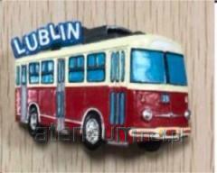 Pamiątkowy magnes na lodówkę z jednym z miast Polski.