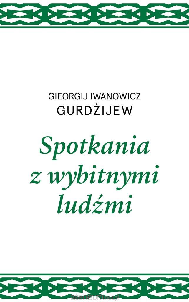 Spotkania z wybitnymi ludźmi stanowią drugi cykl pism G.I. Gurdżijewa. Po raz pierwszy ukazały się we Francji w roku 1960. Niniejsze trzecie wydanie w języku polskim zostało przygotowane na podstawie oryginalnego tekstu rosyjskiego, który stał się dostępny dopiero w roku 2015. Jak powiedział sam autor, jego zadaniem w tym cyklu było dostarczenie materiału potrzebnego do stworzenia odczucia nowego świata odczucia rzucającego inne światło na życie człowieka. Spotkania z wybitnymi ludźmi to opowieść o latach dzieciństwa, młodości i pierwszym etapie poszukiwań Gurdżijewa. Nie jest to jednak autobiografia w ścisłym znaczeniu tego słowa. Opowiadając o swoim barwnym życiu i niewiarygodnych wprost przygodach, Gurdżijew daje nam przedsmak innej rzeczywistości i wskazuje na źródła posiadanego przez siebie poznania. Gieorgij Iwanowicz Gurdżijew uważany za jednego z największych mistyków XX wieku, urodził się w Armenii około 1870 roku i zmarł w Paryżu w 1949. Już we wczesnej młodości jego pragnienie zrozumienia sensu ludzkiego życia stało się tak silne, że zaczął przyciągać do siebie grupę wybitnych ludzi między innymi inżynierów, lekarzy, archeologów takich samych jak on niestrudzonych Poszukiwaczy Prawdy. Wyruszył z nimi do wielu krajów Bliskiego Wschodu i Azji Środkowej w poszukiwaniu poznania, które, jak czuli, na pewno kiedyś istniało, ale którego prawie wszystkie ślady gdzieś zaginęły.
