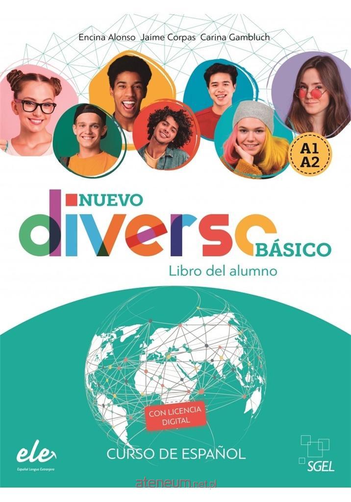 Nowe, poprawione i rozszerzone wydanie podręcznika Nuevo Diverso Bsico (poziom A1/A2) dla uczniów szkół średnich oraz przygotowujących się do matury międzynarodowej IB. Zakup obejmuje roczną interaktywną licencję cyfrową. Nuevo Diverso Bsico zachęca do zintegrowanej nauki poprzez krytyczne myślenie i zwraca uwagę na wartości i postawy życiowe, różnorodność, dociekanie, podejmowanie działań i snucie przemyśleń na temat otaczającego nas świata i samego procesu uczenia się. Składa się z 18 rozdziałów i wstępu, które skupiają się wokół określonych tematów (tożsamość, współzawodnictwo itp.). Każdy rozdział zawiera: wprowadzenie do nowych treści, 3 sekwencje dydaktyczne z różnymi typami tekstów umożliwiających pracę nad słownictwem, gramatyką, komunikacją, ortografią i wymową (z odniesieniami do załącznika Gramtica y ejercicios), część Acción-Reflexión wraz z aktywnościami na podstawie filmu wideo, podwójną stronę z informacjami o hiszpańskojęzycznym kraju, dodatek z gramatyką i ćwiczeniami, podsumowaniem pisowni i wymowy, transkrypcjami nagrań i słownictwem pliki audio do pobrania ze strony wydawcy, bezpłatne materiały dla nauczycieli do pobrania (przewodnik, egzaminy IB).