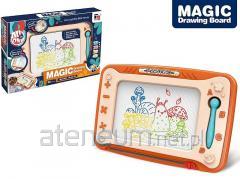 Tablica DUO o wym. 60x40 cm w ramie drewnianej, lakierowanej (MIX  kolorów) o szer.16 i grub.14 mm. Powierzchnia tablicy wykonana z  naturalnego materiału korkowego i ze stali lakierowanej o właściwościach suchościeralnych i magnetycznych. Tył tablicy - pilśnia.  W zestawie 5  szt. pinezek beczułek i 3 szt. magnesów oraz komplet haczyków. Montaż  tablicy w pionie lub w poziomie. Wzmocnienia: dodatkowe zszywki z tyłu  tablicy.