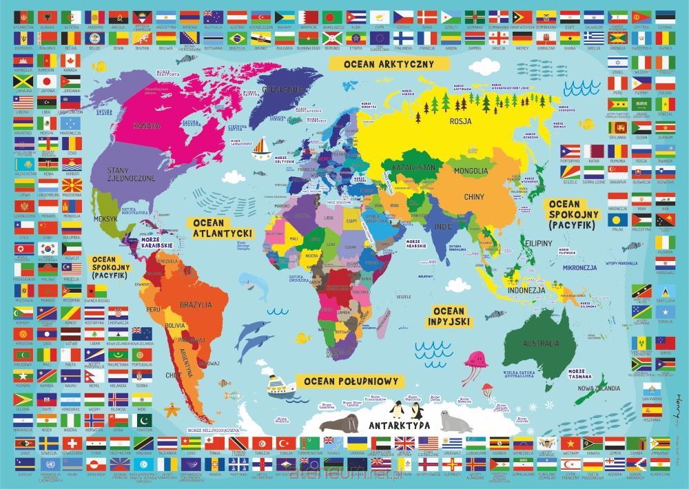 Puzzle 70 elementów. Mapa świata. Dinozaury