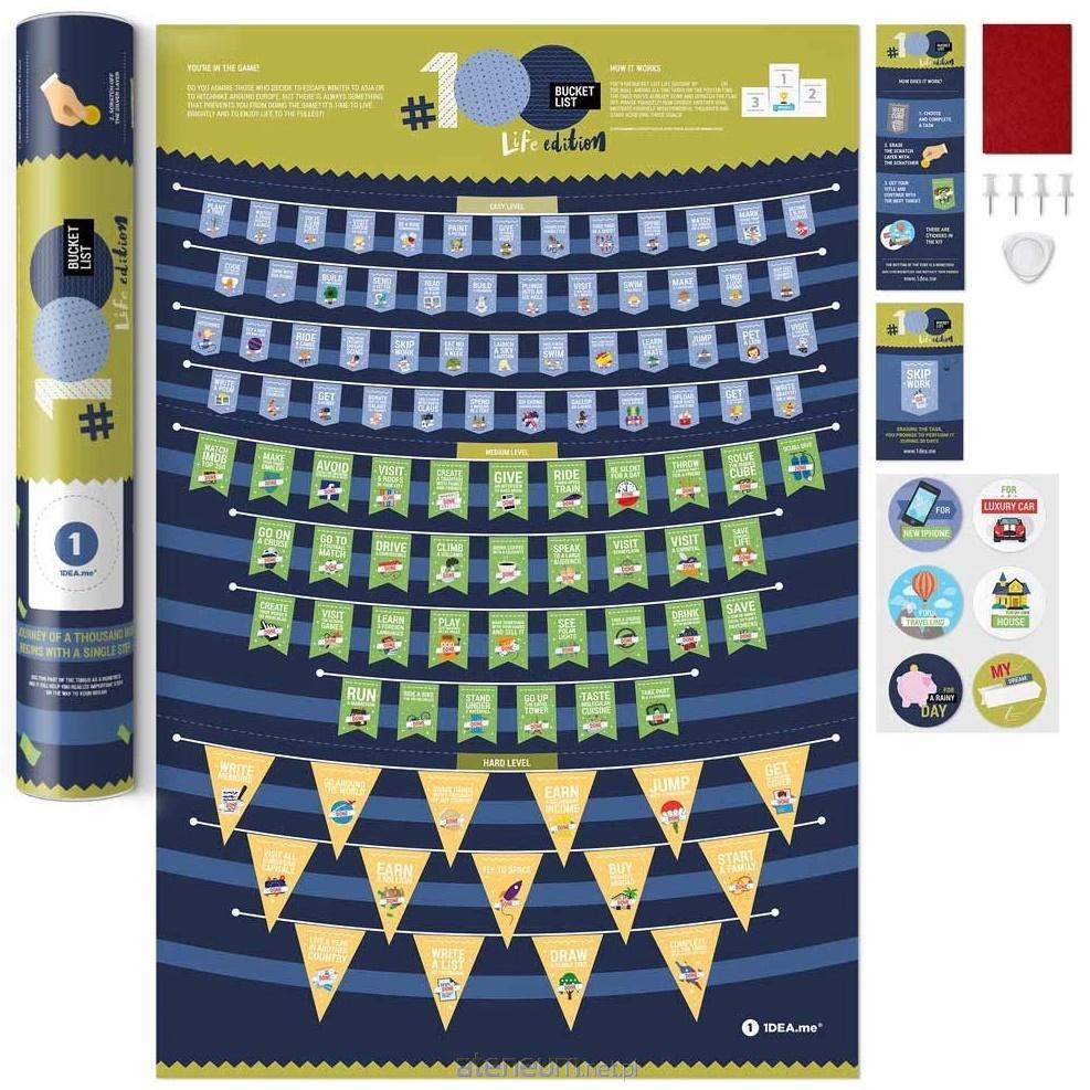 1DEA.me #BUCKETLIST Life Edition to wspaniale zaprojektowany interaktywny plakat ze 100 rzeczami, które powinieneś zrobić w życiu aby wykorzystać je w pełni. Wypełniaj zadania, realizuj marzenia i zdrapuj kolejne pola.