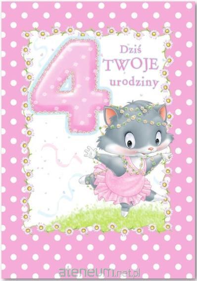 Karnet B6 brokat z kopertą Urodziny 4 dziewczynka