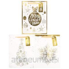 Mix wzorów wysyłany losowo. Ekskluzywne torby do prezentu z grubego, satynowego papieru, motywy dekoracyjne uszlachetnione metalizowaną folią. Uchwyt z dopasowanej kolorystycznie satynowej tasiemki. Do uchwytu dołączony jest karnecik z możliwością wpisania adresata prezentu. Szerokość: 12,0 cm, długość: 16,0 cm, głębokość: 6,5 cm
