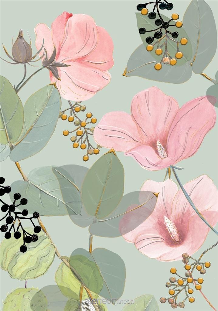 Karnet B6 YG-20-G106 złocony Kwiaty seledyn