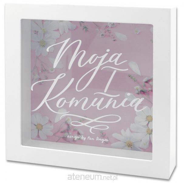 Pierwsza Komunia Święta to niezwykła chwila... Niech ta skarbonka będzie pamiątką, a uzbierany w niej fundusz zostanie wydany na coś naprawdę wyjątkowego! Skarbonka jest wykonana z MDfu wraz ze szklaną szybką oraz ozdobnym napisem. Zapakowana w estetyczne, kolorowe pudełko. Format: 18 x 18 cm.