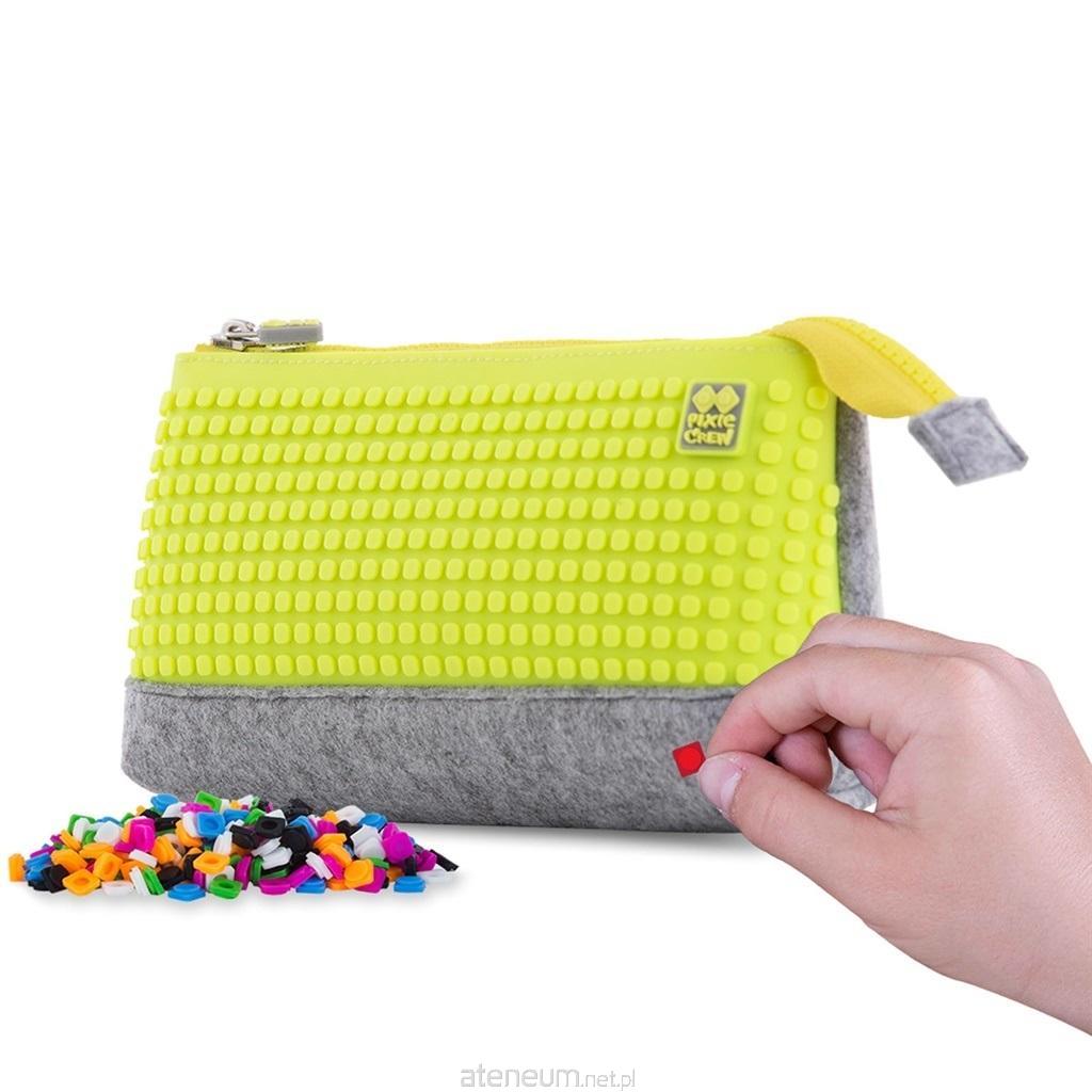 Duży, wielofunkcyjny szary piórnik na suwak PIXIE  CREW, z kreatywnym żółtym, neonowym panelem, na którym można tworzyć oryginalne  i spersonalizowane grafiki, za pomocą małych silikonowych pikseli. Wykonany  został z silikonu i filcu, aby chronić zawartość przed wstrząsami i uderzeniami.  Piórnik zapinany jest na suwak. Wewnątrz znajduje się wystarczająco dużo miejsca  nie tylko na przybory szkolne, ale również na inne małe rzeczy, które chcemy  mieć pod ręką. Dlatego doskonale sprawdzi się także jako kosmetyczka czy  saszetka. Piórnik jest sprzedawany z dodatkowym darmowym zestawem około  100 pikseli.