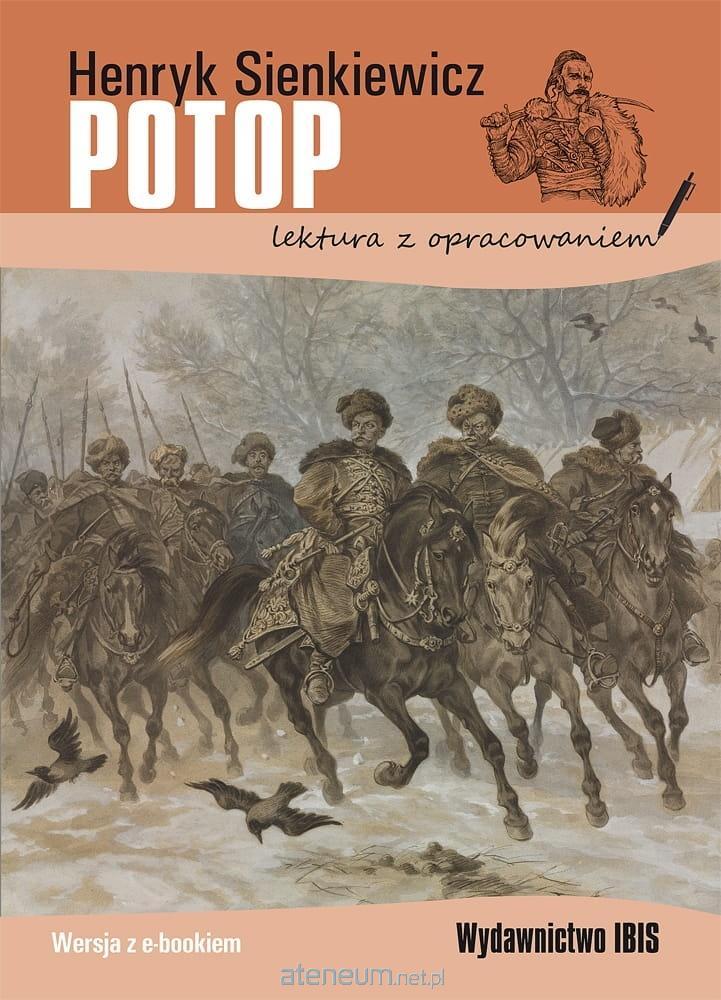 Potop jest drugą częścią Trylogii, został ukończony w 1886 r. To kolejna powieść historyczna pisana ku pokrzepieniu serc, w której Sienkiewicz ukazuje dzieje najazdu szwedzkiego na Polskę w XVII w., w tym najważniejszy etap najazdu, czyli lata 1655-1657. Autor nie fałszuje wizji historii, ale pragnie podporządkować fakty idei patriotycznej. Sienkiewicz pragnął Potopem wlać otuchę w polskie serca, pokazać, że skoro w przeszłości potrafiliśmy wyjść zwycięsko ze wszystkich opresji, to powinniśmy wierzyć w od rodzenie narodu i wybicie się na niepodległość. Henryk Sienkiewicz (1846-1916) urodził się 5 maja 1846 r. w Woli Okrzejskiej na Podlasiu. Po matce odziedziczył zamiłowanie do literatury. Od dzieciństwa interesował się dziełami staropolskich pisarzy i próbował swych sił w pisaniu wierszem i prozą. W latach osiemdziesiątych został redaktorem naczelnym konserwatywnego dziennika Słowo". Dużo podróżował. Burzliwe dyskusje wywoływały jego nowo powstałe dzieła, podejmujące problematykę historyczną, przede wszystkim Trylogia. Pierwsza część pt. Ogniem i mieczem ukazała się drukiem na przełomie 1883 i 1884 r. Potop - druga część Trylogii-powstał w latach 1884-1886, a na przełomie 1887 i 1888 r. ukazał się Pan Wołodyjowski. W 1896 r. ukazało się Quo vadis - powieść, której akcja rozgrywa się w starożytnym Rzymie. W 1905 r. otrzymał literacką Nagrodę Nobla za całokształt twórczości. Próbował swych sił także w powieściach obyczajowych, jak np. Bez dogmatu (1891 r.) i Rodzina Połanieckich (1894 r.). Napisał również m.in. nowele: Sachem, Wspomnienie z Maripozy, Za chlebem, Niewola tatarska, Orso, W krainie złota i powieści historyczne: Krzyżacy (1900 r.), Na polu chwały (1906 r.) czy powieść dla młodzieży: W pustyni iw puszczy (1912 r.)