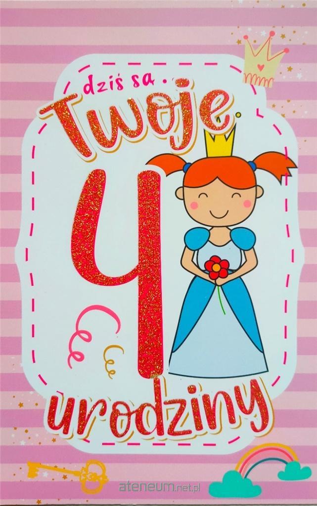 Karnet B6 brokat z kopertą Urodziny 4 dziewczynka