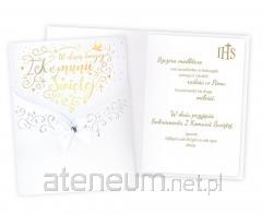 Każda kartka w kolekcji Passion Moments to małe arcydzieło - wyjątkowe i niepowtarzalne, świetne w dotyku, piękne wizualnie, po prostu niepowtarzalne. Kartki PM są bardzo bogato zdobione, a jednocześnie skromne i stylowe, cały efekt tkwi w detalach i doskonałym wykonaniu. W zależności od wzoru, na kartkach znajdują się dekoracje ze złotej, srebrnej, perłowej lub holograficznej folii, a także doklejki biżuteryjne, kokardki, brokat, laserowe wycięcia, wstążeczki i inne dodatki. Wnętrze karnetu do zawsze atrakcyjna grafika i tekst życzeń. Kartki mają w komplecie dopasowaną kopertę. Cechy szczególne: zdobienie: przynajmniej dwie folie (metaliczne/perłowe/holograficzne), brokat, elementy doklejane, wycięcia laserowe, wstążeczki - w zależności od wzoru, wnętrze: kolorowe, z delikatną grafiką, wyjątkowe życzenia w środku, w komplecie: dopasowana kolorystycznie koperta, okazja: komunia.