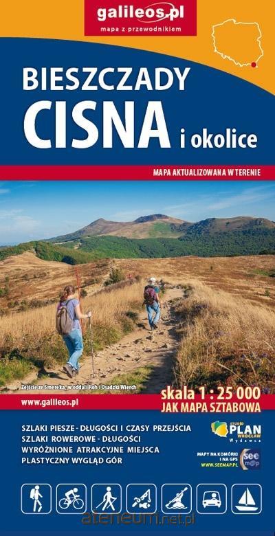 Mapa dwustronna, wydrukowana na papierze kartograficznym o wzmocnionej strukturze, wersja wodoodporna wydrukowana na folii kartograficznej odpornej na przedarcia, wiatr, deszcz, praktycznie nie do zniszczenia. Obszar mapy to: Jabłonki, Zatwarnica, Łopienka, Wetlina, Balnica. W jej centralnej części jest miejscowość Cisna. Mapa zawiera wszelkie informacje pozwalające łatwiej zaplanować wycieczkę trasy rowerowe, szlaki piesze i ścieżki przyrodniczo-edukacyjne z podaniem ich długości i czasów przejść. Siatka geograficzna oparta jest na elipsoidzie WGS 84 stosowanej w nawigacji. Ukształtowanie terenu pokazano przy pomocy warstwic o cięciu 10 m. Zastosowanie nowatorskiego cieniowania pozwoliło uwypuklić atrakcyjność form terenowych. Część opisowa bogata w informacje o wszystkich pasmach górskich, rezerwatach przyrodniczych, miasteczkach i wioskach tego regionu. Całość zilustrowana wieloma nigdzie niepublikowanymi fotografiami. Jest to region, gdzie ściągają rzesze turystów, fotografów, ludzi chcących odpocząć od zgiełku, miłośników przyrody. Redakcja: Grzegorz Zwoliński