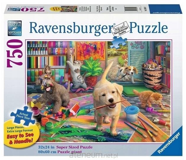 oPuzzle marki Ravensburger posiadają antyrefleksyjną powłokę - są wykonane z opatentowanego, grubego kartonu z miękką podściółką (obrazek nadrukowany jest na papierze o strukturze włókna lnu, które ogranicza odbijanie światła, ułatwia układanie, a sam obrazek, niezależnie od wielkości puzzli, jest wyraźniejszy).