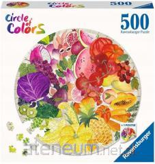 Puzzle 2D: Paleta kolorów 500 elementów dla dorosłych - po ułożeniu mają kształt koła, w którym zamknięto motyw wielokolorowego obrazka.