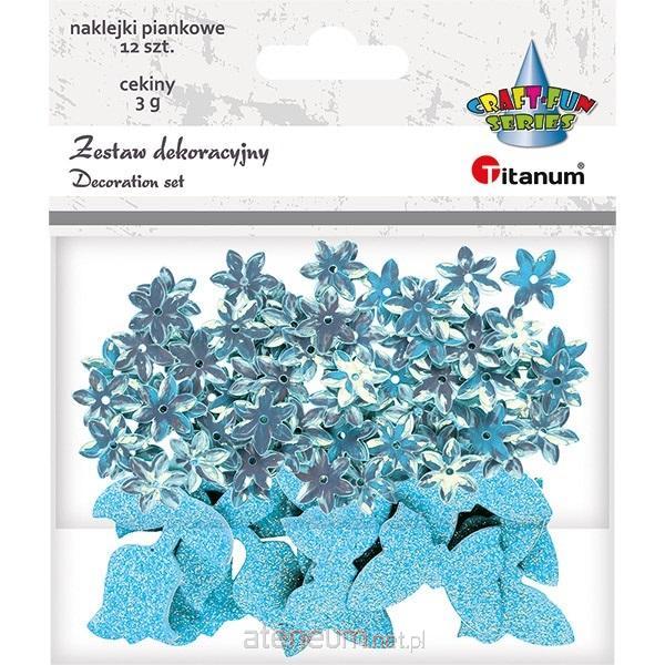 Zestaw cekiny kwiaty i naklejki piankowe brokatowe motyle i tulipany błękitne 12szt.