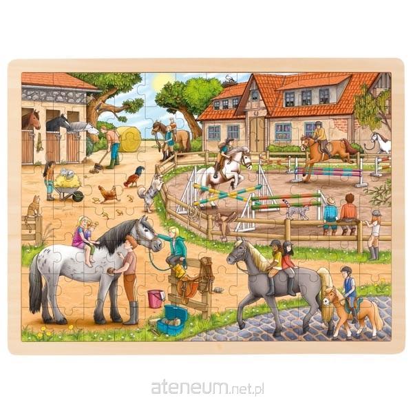 Gdy skończysz układać te puzzle, ukaże Ci się szkółka jeździecka z prawdziwego zdarzenia! Możesz porozmawiać o obrazku z mamą, np. o tym, co się dzieje w takim miejscu, co robią zwierzęta i ludzie. A czy Ty siedziałeś już kiedyś na koniu? Liczba elementów: 96. Materiał: drewno.