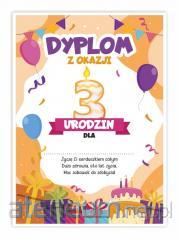 Dyplom w formacie A4 (30cm x 21cm), wydrukowany na grubym papierze 300g.