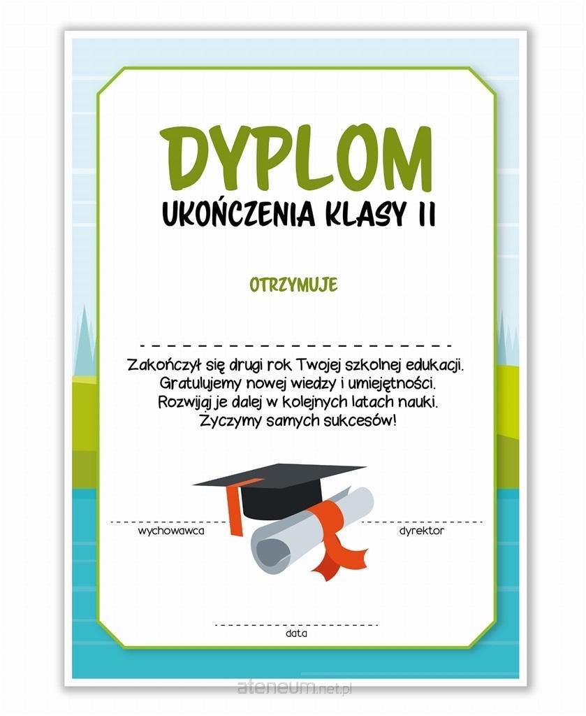 Dyplom w formacie A4 (30cm x 21cm), wydrukowany na grubym papierze 300g.