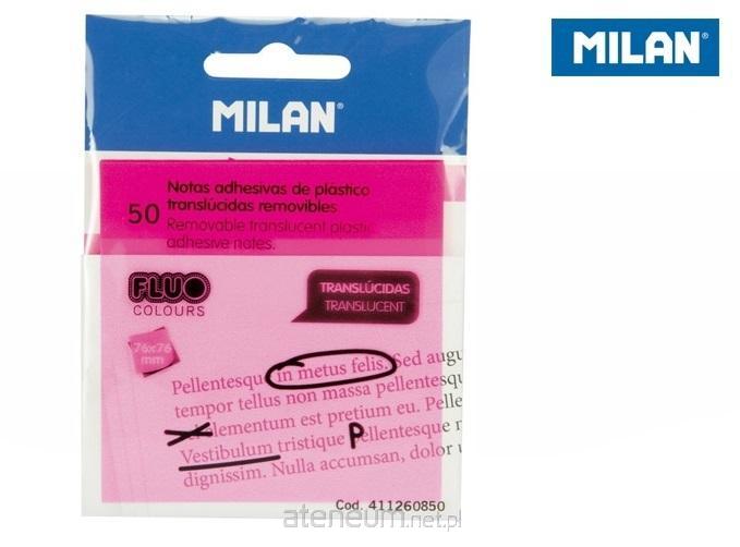 Plastikowe, przezroczyste karteczki samoprzylepne w kolorze różowym do wielokrotnego przyklejania i odklejania.