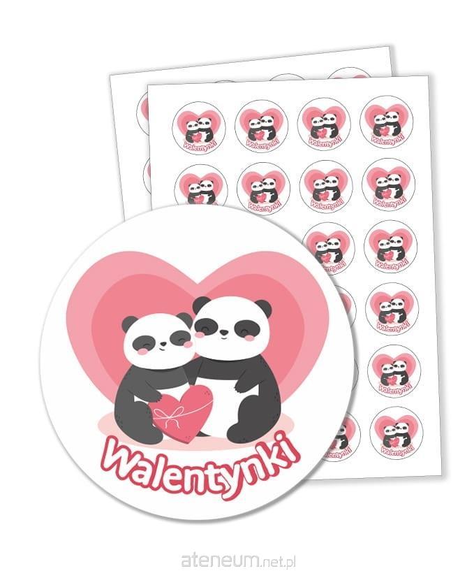 Duży zestaw 48 naklejek walentynkowych ze słodkimi pandami idealne jako ozdoba do Walentynek.