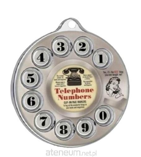 Zakładki do książki w formie klipsów z cyframi od 0 do 9. Całość zapakowana w formie tarczy starego telefonu. Klipsy można z łatwością wpinać w książkę, a cyfry umożliwiają porządkowanie sekwencyjne.